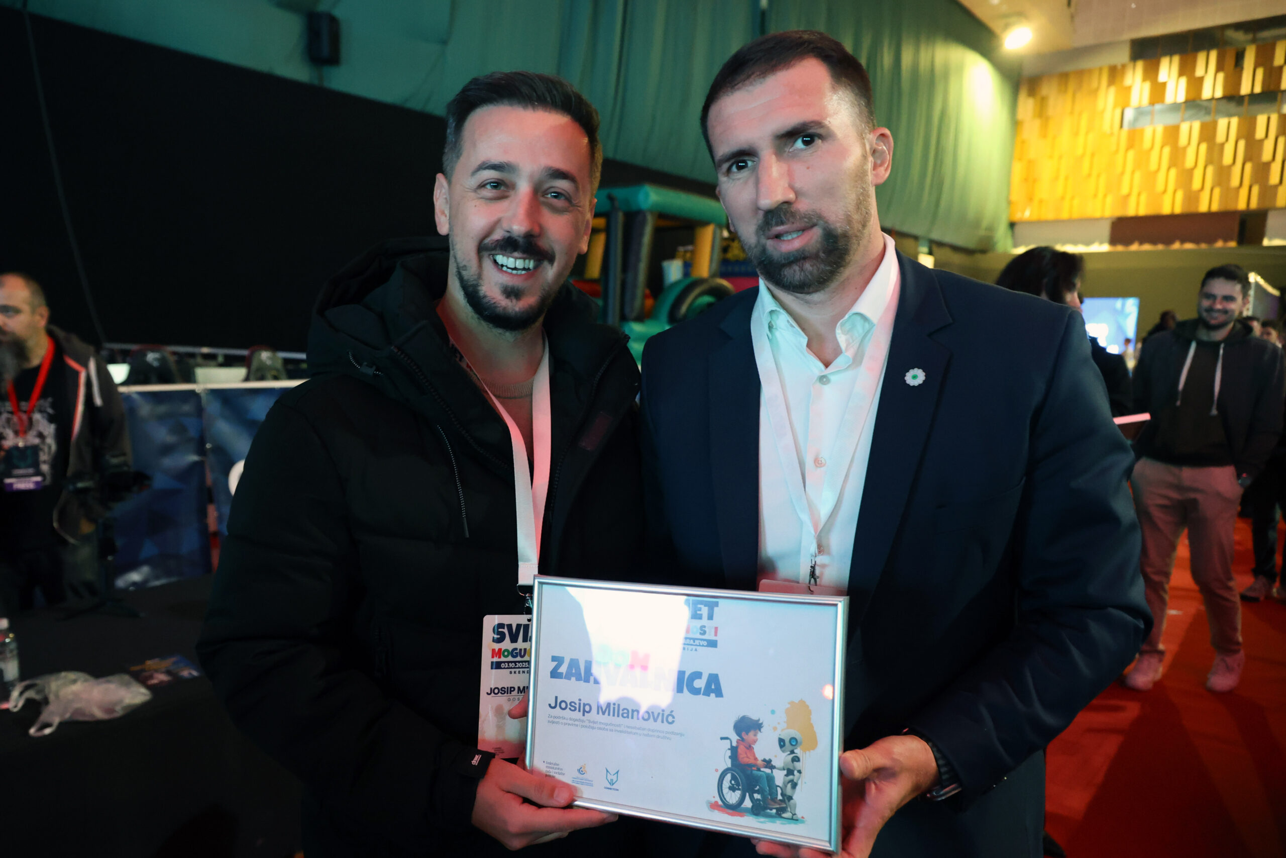 Na kraju programa ministar je uručio zahvalnice ključnim učesnicima: predsjedniku Upravnog odbora Fonda Senadu Pešti, direktoru Fonda Ahmetu Baljiću, panelistima, influencerima Ildi Humić, Naidi Bojnakov, Samri Menzilović i Josipu Milanoviću (PisoJ), kao i ambasadorima projekta Ismailu Barlovu i Ismailu Zulfiću te njihovom treneru Amelu Kapi. Poseban doprinos inkluzivnosti dao je prostor senzorne sobe, gdje su djeca mogla predahnuti od gužve, zvukova i svjetala, što je događaju dalo dodatnu dimenziju pažnje i osjetljivosti.