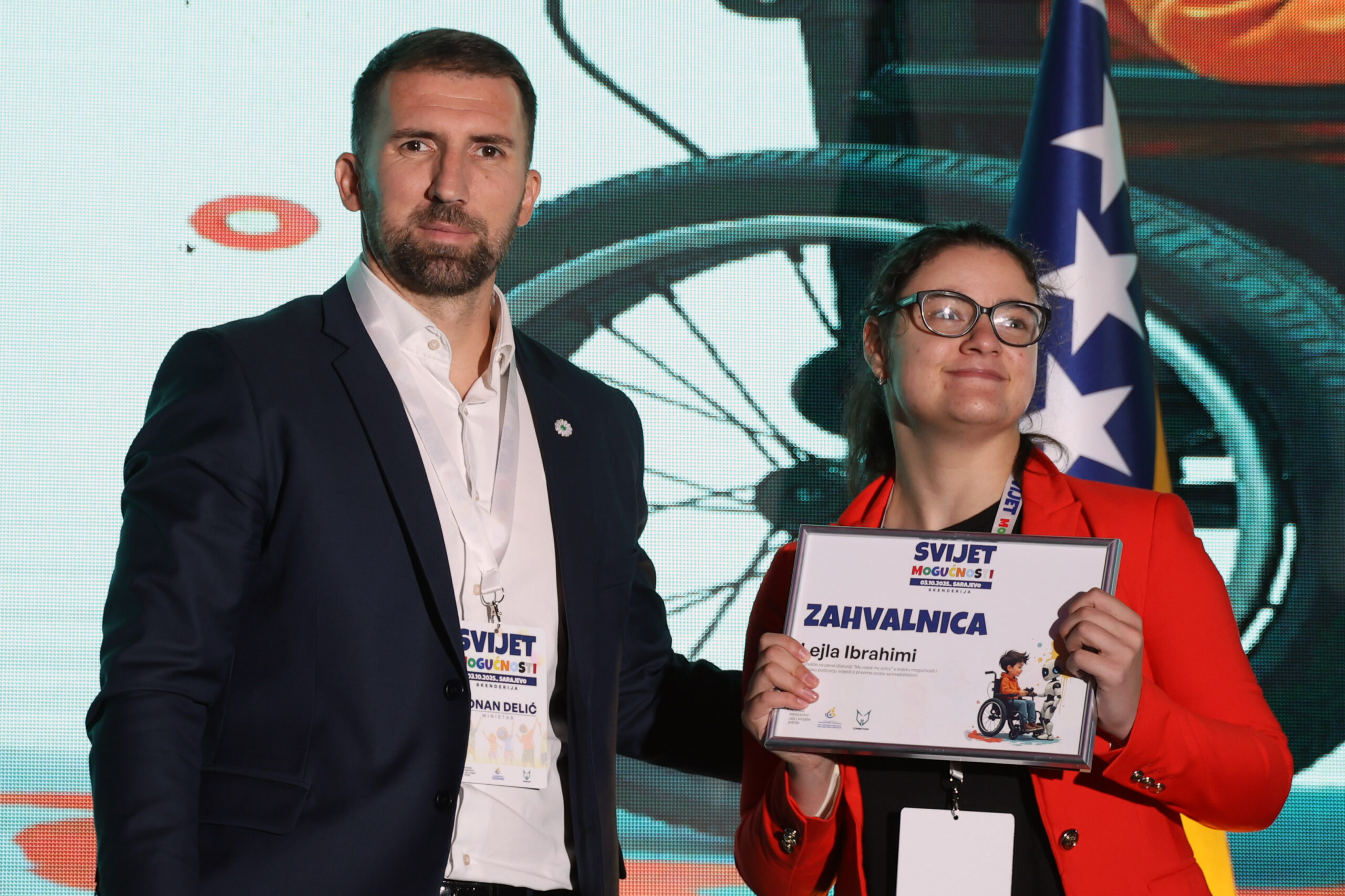U svom obraćanju federalni ministar rada i socijalne politike Adnan Delić naglasio je važnost uklanjanja nevidljivih granica, onih koje stvaramo nerazumijevanjem, strahom i predrasudama, te je pozvao sve aktere da rade zajedno, od političkih struktura i nevladinog sektora, preko poslodavaca do influensera i šire javnosti. „Ko hoće, nađe način; ko neće, nađe izgovor. To je suština čitavog života. Prepreke se mogu pretvoriti u mogućnosti, a barijere u mostove. Inkluzija nije nikakav daleki ideal, niti nedostižni sveti gral, nego jednostavan put koji počinje našom spremnošću da njime krenemo“, poručio je ministar Delić.